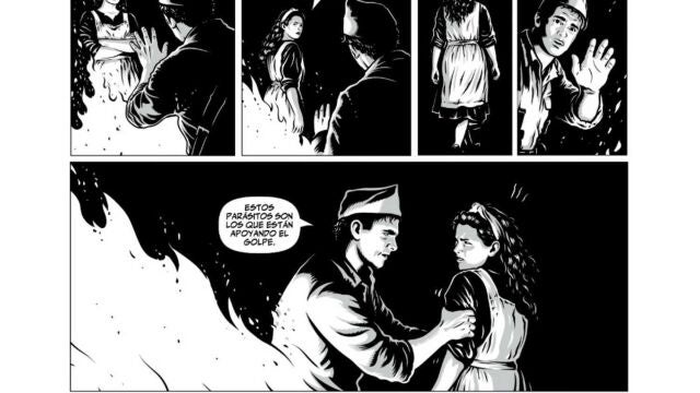 A partir de ahí, las viñetas entran en el conflicto propiamente dicho, pero lo hace sin recrearse en la violencia gratuita. La guerra está presente, por supuesto, pero como una consecuencia, no como el foco en el que poner el lápiz. Se explican los bandos, las dinámicas internas, la situación internacional, la represión en ambos lados.