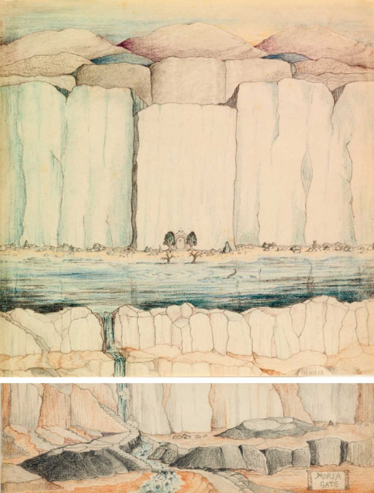 Volviendo a lo que nos ocupa, esos bocetos se han recopilado e integrado ahora en una nueva edición ilustrada de El señor de los anillos. Reúne treinta bocetos hechos por el autor. Y es curioso porque son todos de paisajes de la propia Tierra Media. No hay de personajes. Sólo una excepción. Al final, hay una del brazo de Sauron. Pero el fuerte de todas estas imágenes es su nivel de detalle. Os dejamos por aquí unos ejemplos: