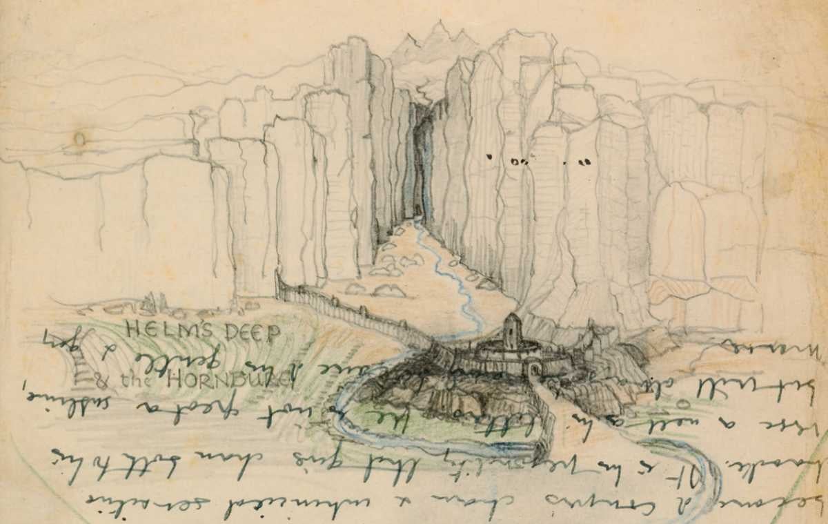 Lo que no sabíamos es que el propio Tolkien, mientras iba escribiendo las andanzas de Frodo y compañía, también las veía con total claridad en su imaginación. Es decir, no solo se contentaba con crear una mitología, unos personajes inolvidables, incluso un idioma. No. También dibujaba. Y lo hacía de una forma bastante competente. Se puede escribir bien, pero si encima ya dibujas bien, roza un poquito el abuso, ¿no? Pero a J. R. R. Tolkien, no le vamos a poner pegas por eso ahora. A él se le perdona todo.