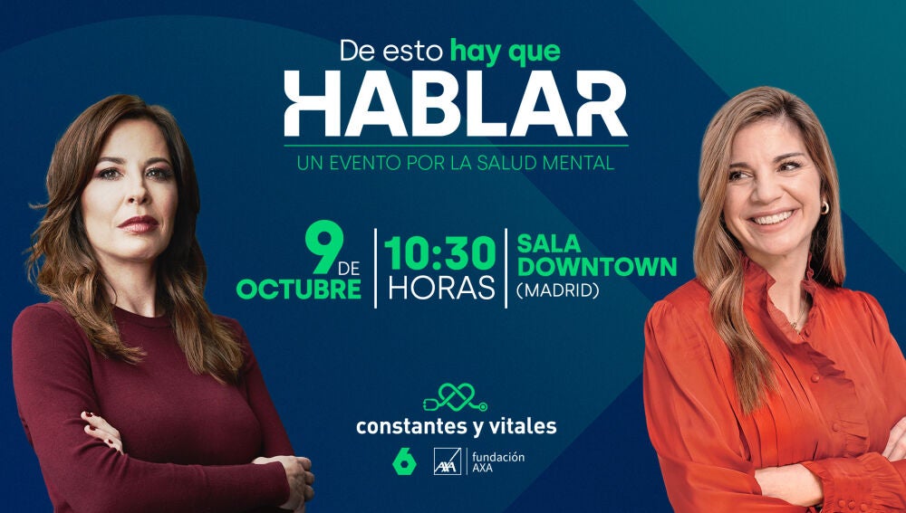 Con motivo del Día Mundial de la Salud Mental, laSexta y Fundación AXA organizarán, dentro de su iniciativa de Responsabilidad Corporativa Constantes y Vitales, el evento 'De esto hay que hablar', una cita imprescindible para reflexionar y visibilizar los desafíos emocionales y psicológicos en la sociedad actual. El encuentro tendrá lugar el próximo jueves, 9 de octubre, desde las 10.30 horas en el Espacio Downtown de Madrid (Calle de la Paloma, 15), en una oportunidad única para escuchar a expertos, líderes institucionales y voces comprometidas con esta causa.