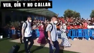 Saludan algunos con cierta timidez, pulgar en alto o alzando la mano como mucho. Entre ellos, los capitanes y el seleccionador, porque ya se saben la lección de otras veces. Otros ni miran.