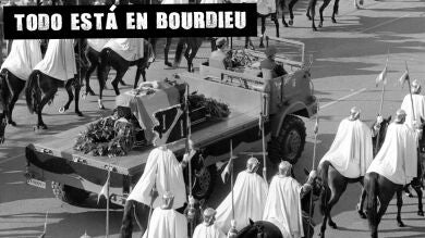 Francis Franco ha estado estos días dando pena por las televisiones. Más de la habitual. Con los ojos cansados por el shock que le supone ser consciente de la pérdida de un favor que le vino regalado narra las vicisitudes de la familia ante el trasiego de su abuelo. El pobre mísero se queja apesadumbrado de que no le han dejado poner una bandera fascista sobre el féretro del sátrapa, se queja de que el ataúd irá desnudo mientras desfilará entre miles de cajas de madera de sus víctimas, sin nombre, despojadas de memoria. Narra cómo los hombres de la familia -los hombres- van a hacer relevos para llevar el féretro porque hay muchos escalones. Es lo más cerca que han estado de trabajar en cuarenta años y sus manos de prole aburguesada no aguantan un corto trasiego con el peso de varios kilos de madera, zinc y cenizas de asesino.