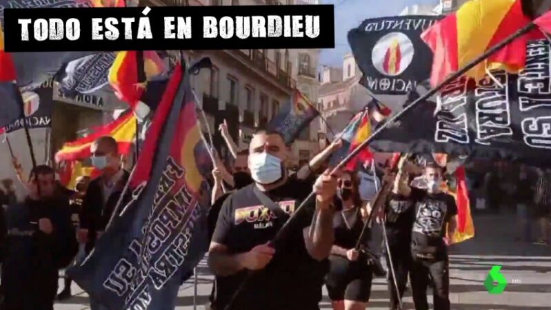 La acción es el último peldaño de la performatividad de la palabra cargada de odio. Durante los últimos años se ha creado un enemigo colectivo de la idea de España que tiene la extrema derecha y que se conforma con las personas migrantes, los menores no acompañados, las feministas, los y las homosexuales y la izquierda. A partir de la construcción simbólica de ese objetivo se crea una ambiente propicio para que los más radicales, sean seguidores de VOX o colectivos aún más radicalizados, intenten capitalizar el beneficio de ese humor público dirigiendo su ira contra ellos. La estrategia consiste en darse visibilidad, cooptar el odio y hacerlo propio para mostrar a la opinión pública su oferta política.