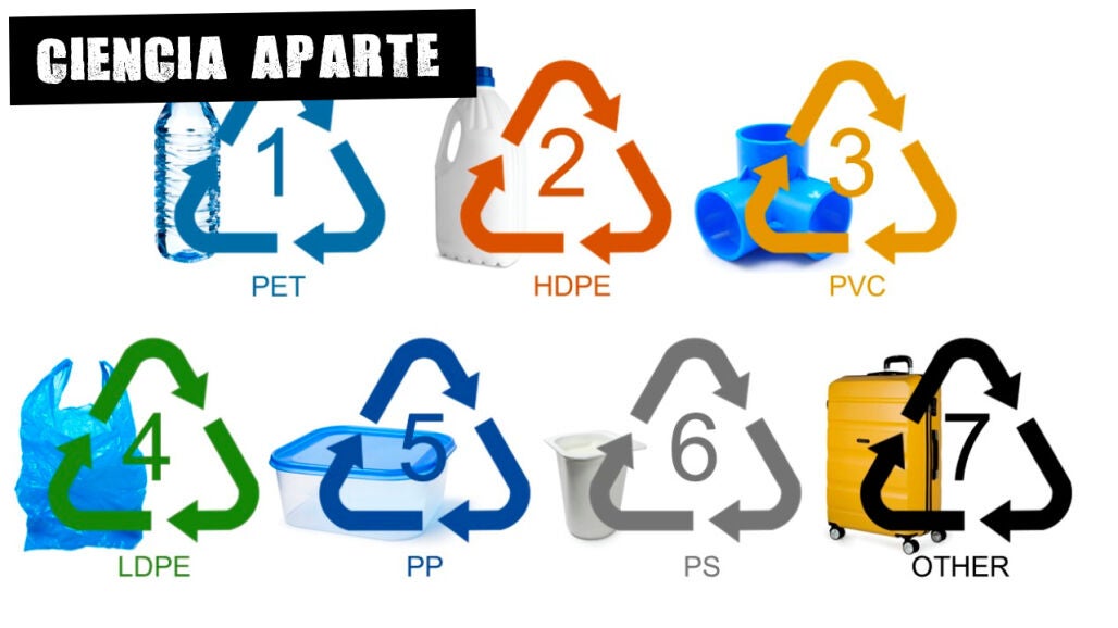 Los polímeros plásticos se clasifican de multitud de maneras: atendiendo a su proceso de fabricación, a su procedencia, a su comportamiento frente al calor, a su elasticidad, a su composición… y a las sustancias a partir de las que se sintetizan. También se clasifican con el sistema de identificación americano SPI –son los pictograma con un número dentro que ilustran este artículo– que resulta muy útil para saber su composición y cómo hay que reciclar y reutilizar cada polímero.