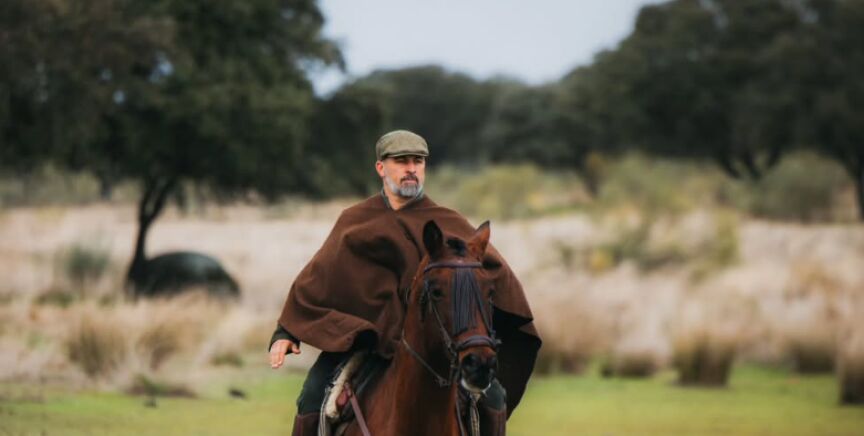 En el vídeo, que está acompañado por música, se le ve subido a lomos del equino ataviado con una boina y una capa, pastoreando rebaños de merina negra en la dehesa extremeña.