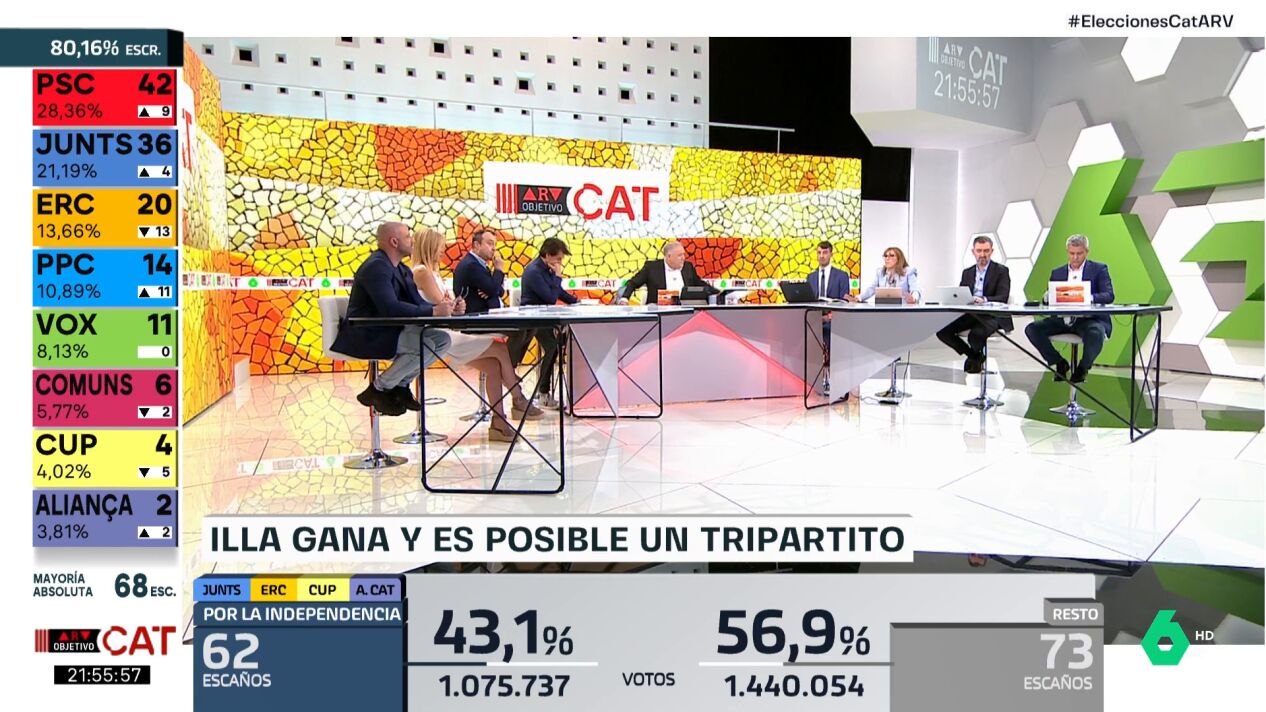 La directora de 'El Plural' Angélica Rubio ha calificado este domingo en el especial electoral de Al Rojo Vivo de "históricos" los resultados del PSC en las elecciones de este domingo en Cataluña, señalando el gran papel que han jugado dos protagonistas fundamentales: el candidato Salvador Illa y el presidente del Gobierno y secretario general del PSOE, Pedro Sánchez.