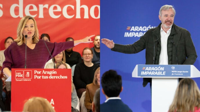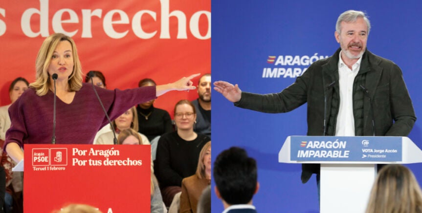 El plan de domingo para Pilar Alegría, la candidata del PSOE a gobernar en Aragón, y Jorge Azcón, candidato del PP y actual presidente de la comunidad autónoma, es tener la vista puesta en el siguiente. "Huele a victoria el 8 de febrero. Vamos a volver a ganar en esta tierra", ha asegurado Alegría, mientras que el 'popular' ha señalado que "en estas elecciones, quien se presenta por el PP es Jorge Azcón, no se presenta Santiago Abascal o Pedro Sánchez", a lo que ha añadido: "Pero a Pedro Sánchez también vamos a enseñarle la puerta de salida".
