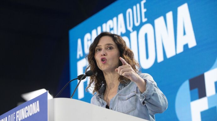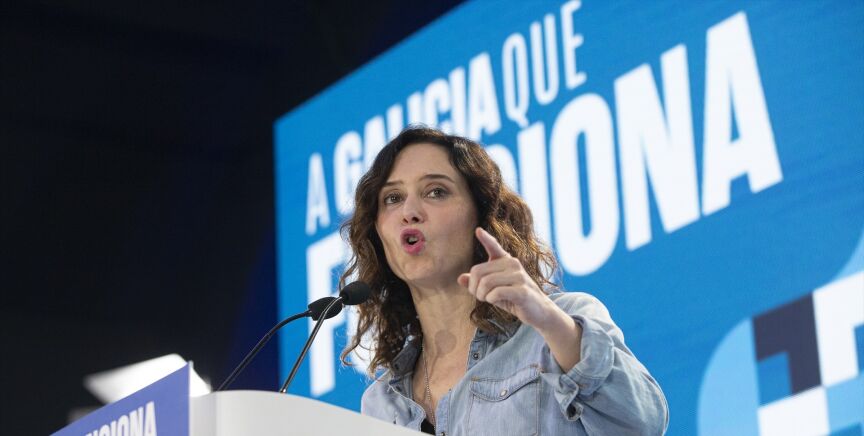 La presidenta madrileña ha sostenido este viernes en un acto en Sanxenxo que "Galicia es el siguiente objetivo de nacionalistas y comunistas, con la complicidad de los socialistas". Al igual que Feijóo, la dirigente ha vinculado al partido gallego con ETA.
