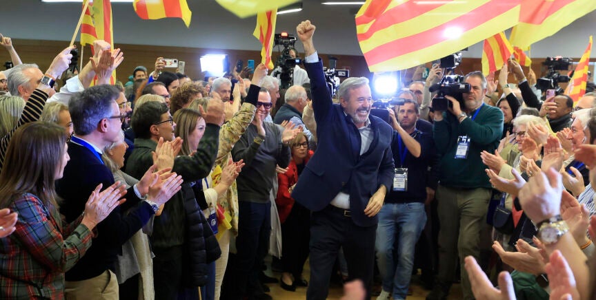 Felicidad a medias ante una victoria electoral a medias. Es la sensación con la que se queda el Partido Popular tras ganar las elecciones de Aragón con un 34% de los votos. Pese a ser la fuerza más votada, el PP sabe que el efecto buscado por el presidente autonómico Jorge Azcón al convocar las elecciones ha estado muy lejos de cumplirse, quedándose a ocho escaños de la ansiada mayoría absoluta.