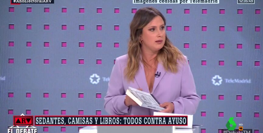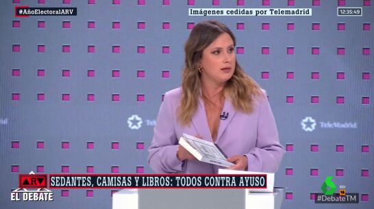 Alejandra Jacinto, durante el debate se ha desplazado hasta el atril de la presidenta con el libro y ella lo rechazó. "No, no. Se lo ruego no me lo acerque. No, no. Se lo agradezco pero no. Gracias, no", ha respondido Ayuso.