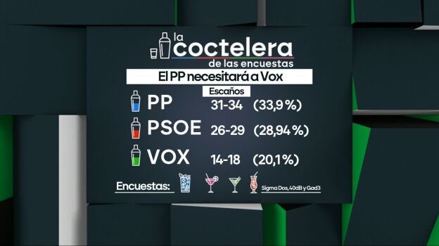 Por su parte, el PSOE de Carlos Martínez experimentaría un descenso según dicha encuesta, aunque no demasiado grande. De esta forma, si en 2022 logró un 30%, ahora estaría en un 24,4%. Por tanto, de los 28 escaños que tiene ahora, podría caer entre dos y cuadro. En cuanto a Vox, subiría del 17,6% al 20,8%, para alcanzar entre 16 y 20 escaños, cuando ahora tiene 13.