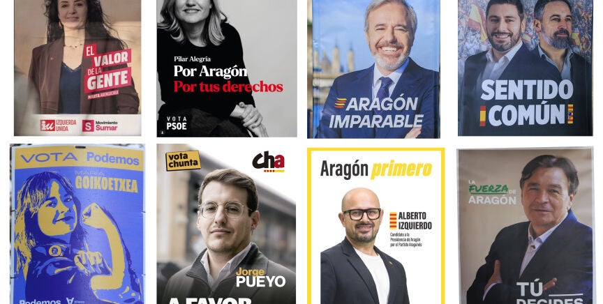 El PSOE, en cambio, no vende velocidad sino protección. 'Por Aragón. Por tus derechos' es un lema que lleva implícitos dos contratos: la pertenencia a un territorio común y que hay que preservar y la garantía de los derechos del Estado del bienestar. Pilar Alegría, desde una sonriente y serena imagen en blanco y negro, habla y parece que quiere escuchar al elector sin intermediarios y coloca los derechos en el centro como patrimonio a defender. Con su mensaje transmite que gobernar es cuidar, unir y resolver y advierte de que lo que está en juego es el modelo de sociedad.
