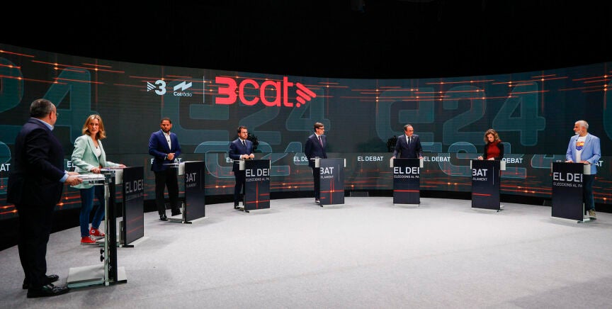 A tres días de finalizar la campaña, TV3 y Catalunya Ràdio han acogido un debate entre candidatos a la Generalitat moderado por la periodista Ariadna Oltra, con Salvador Illa (PSC), Pere Aragonès (ERC), Josep Rull (JxCat, en sustitución de Carles Puigdemont), Ignacio Garriga (Vox), Laia Estrada (CUP), Jéssica Albiach (Comuns Sumar), Carlos Carrizosa (CS) y Alejandro Fernández (PP).
