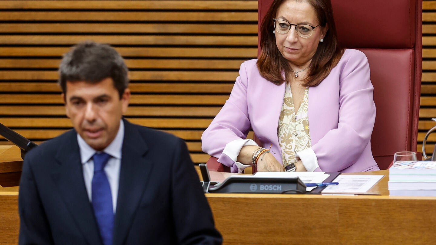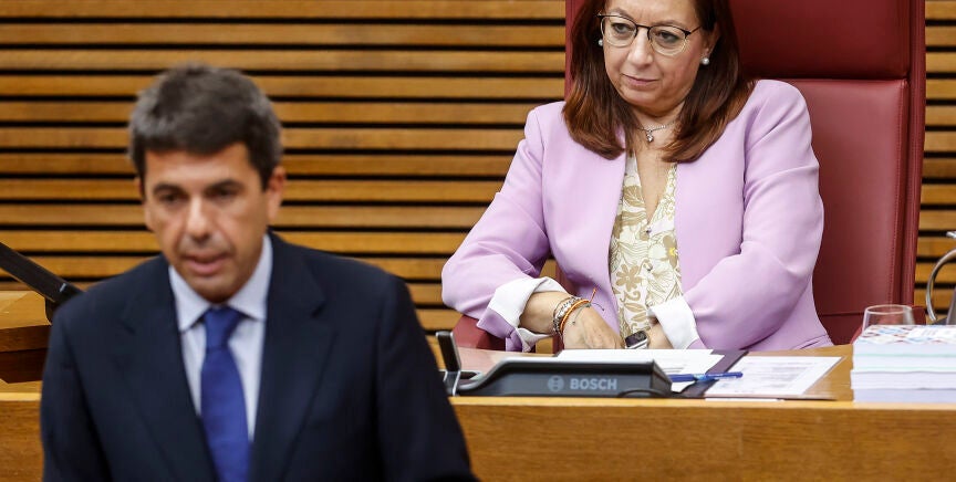 El anuncio de Mazón no deja de ser curioso por sus diferencias entre las palabras y los hechos. Ha pronunciado estas palabras con la nueva presidenta de Les Corts, Llanos Massó (Vox), a su espalda, que hace unos días se apartaba de la pancarta que condenaba la violencia machista.