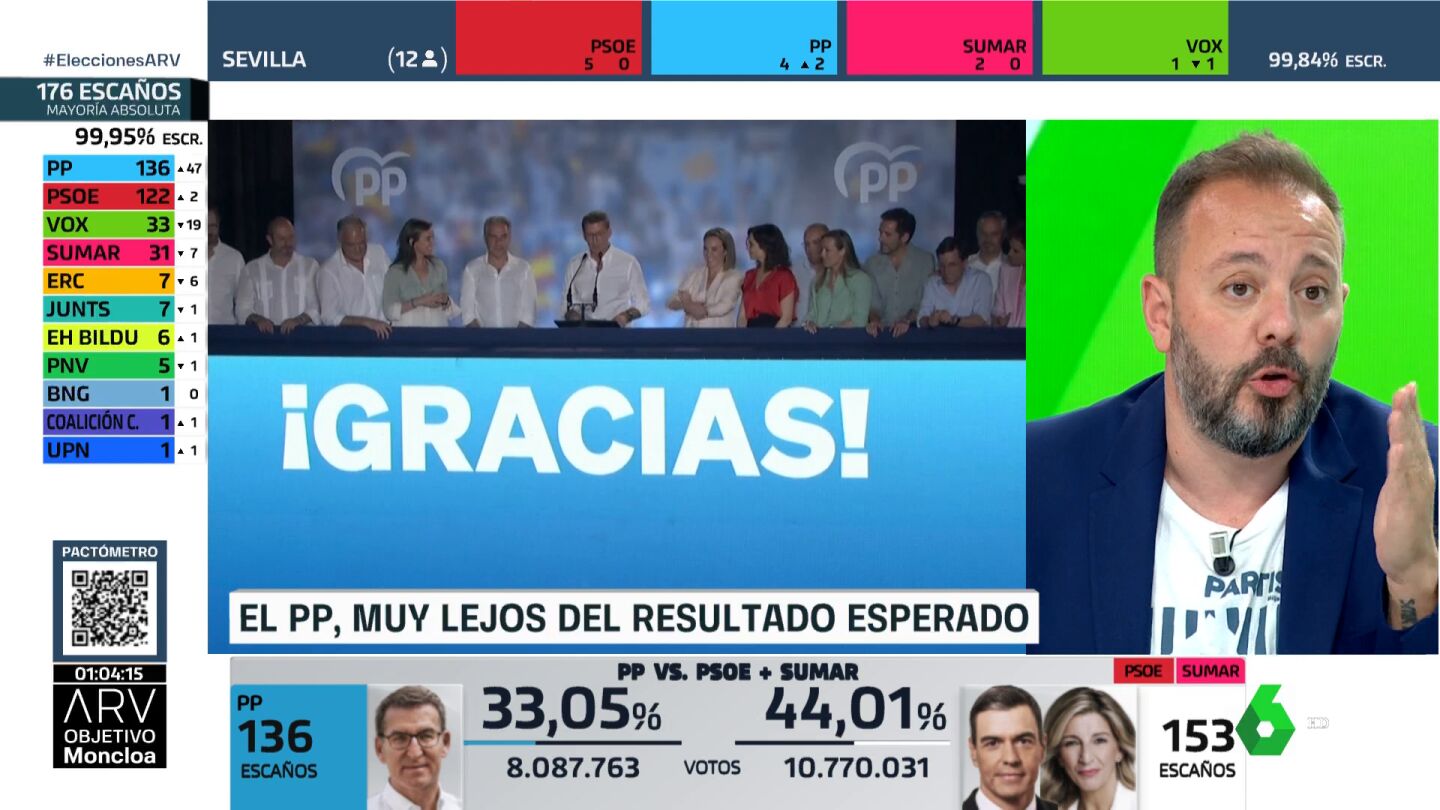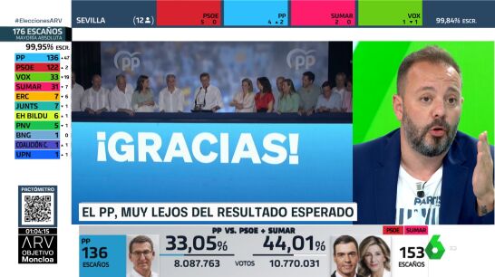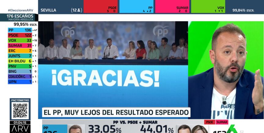En el especial Al Rojo Vivo Objetivo Moncloa, ha explicado que el liderazgo de Feijóo "se ha puesto en cuestión en el momento en el que salió al balcón de Génova y la gente ha empezado a corear a Ayuso". "Ella, con cara circunspecta, no aplaudía cuando la coreaban", ha añadido.