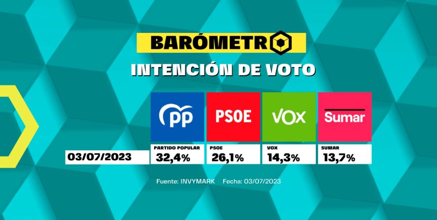 El Partido Popular obtendría el 32,4% del voto ya decidido, subiendo medio punto en apenas 15 días. El PSOE, por su parte, se quedaría en el 26,1% de los apoyos, subiendo también un punto en las últimas dos semanas. Vox sería la tercera fuerza con mayor representación y Sumar sería cuarta.