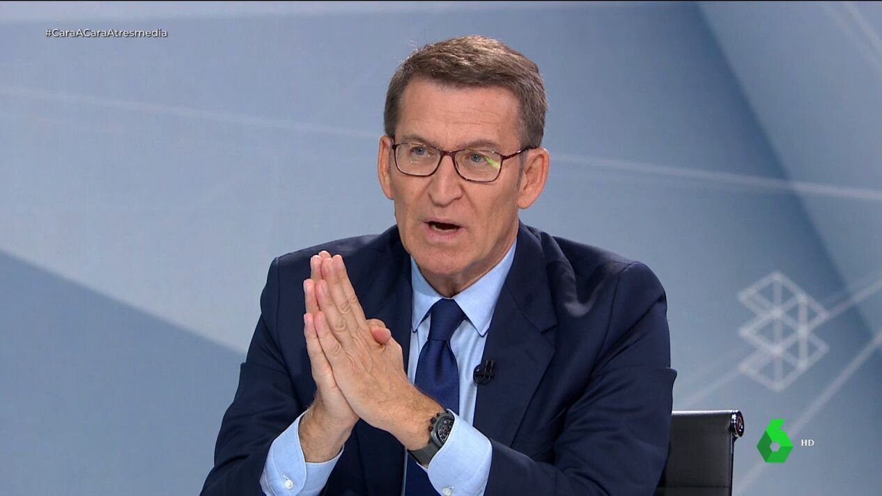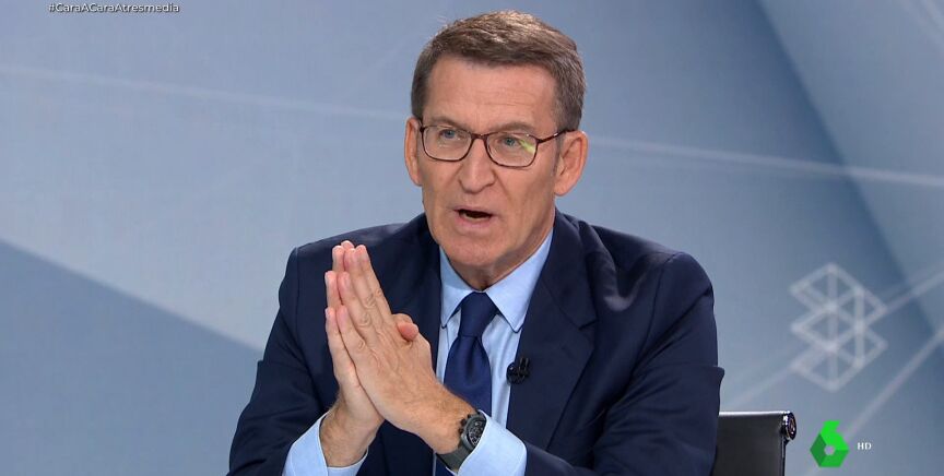 "De pactos no puede dar ninguna lección", ha dicho Feijóo a Sánchez durante su debate cara a cara en Atresmedia, a quien le ha pedido tener "cuidado" cuando habla de la "cantinela" del presidente del Gobierno de los gobiernos del PP con Vox: "Posiblemente acaben igual que en Madrid, en Galicia o en La Rioja".