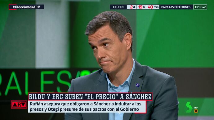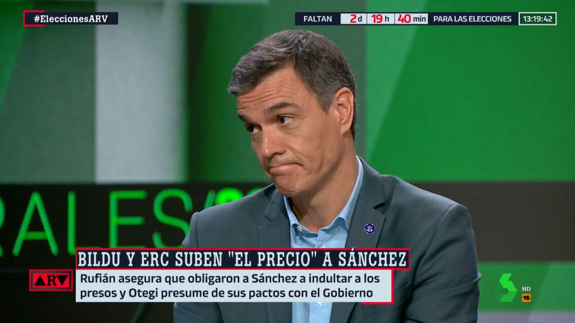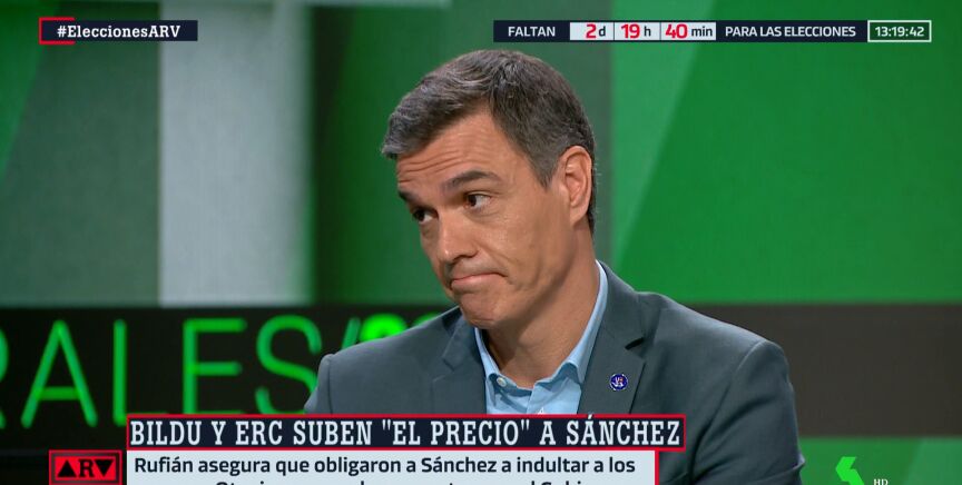 El presidente del Gobierno y candidato del PSOE a la reelección, Pedro Sánchez, ha explicado en Al Rojo Vivo su visión política para Cataluña después de que el líder de Vox, Santiago Abascal, haya sacado pecho recientemente de que si gobiernan PP y Vox volverán las tensiones "y peores" que las de 2017 a Cataluña.