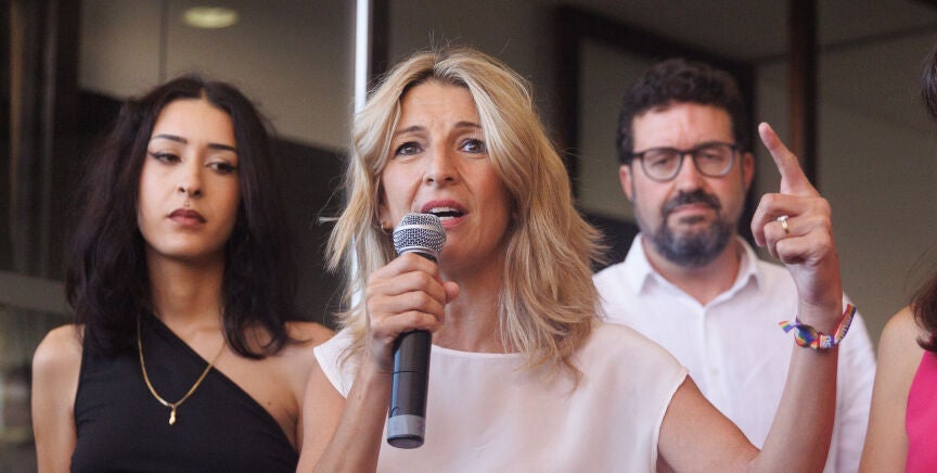 La vicepresidenta segunda del Gobierno y candidata de Sumar, Yolanda Díaz, ha cargado contra los discursos ambiguos del líder del PP, Alberto Núñez Feijóo, en campaña y sus pactos con la extrema derecha. "Lo que está haciendo Feijóo es impropio de un demócrata. Su única aportación ha sido meter a los ultras en su gobierno. Ultras que pisotean los derechos de las mujeres y de las personas LGTBI y que son capaces de hacer desaparecer el diálogo social", ha afirmado con rotundidad Díaz en una entrevista en TVE.