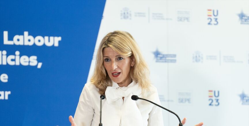 En la rueda de prensa posterior a la jornada inaugural de la conferencia de alto nivel 'El Pilar Europeo de los Derechos Sociales y las nuevas políticas activas de empleo', que ha compartido con el comisario europeo de Empleo y Derechos Sociales, Nicolas Schmit, Díaz ha resaltado que "como consecuencia de la subida de tipos de interés se está produciendo una mayor transferencia de rentas" desde la ciudadanía hacia las entidades financieras.