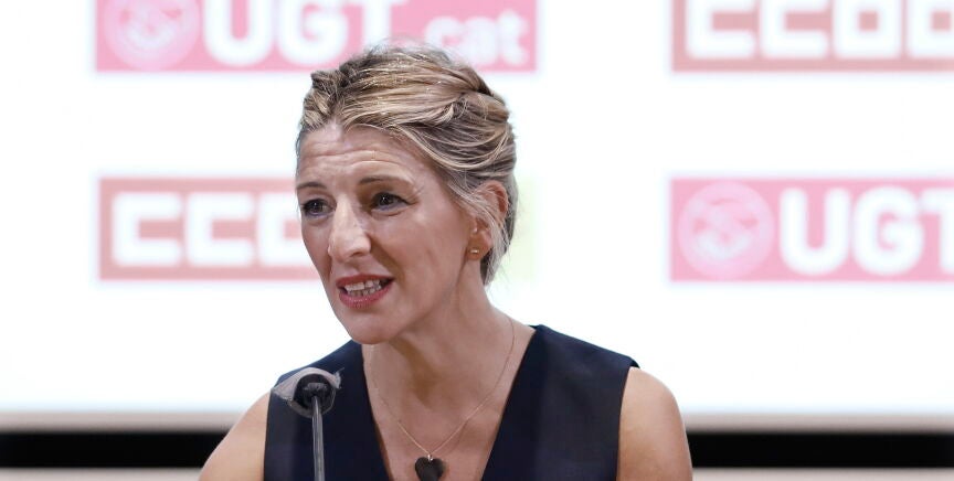 La vicepresidenta segunda en funciones y líder de Sumar ha mantenido una reunión este jueves con los secretarios generales de CCOO y UGT de Cataluña. Desde ahí, ha mandado un mensaje a los socialistas: "Toca ganar derechos".