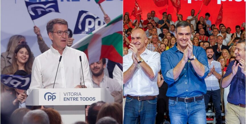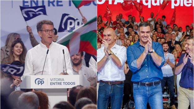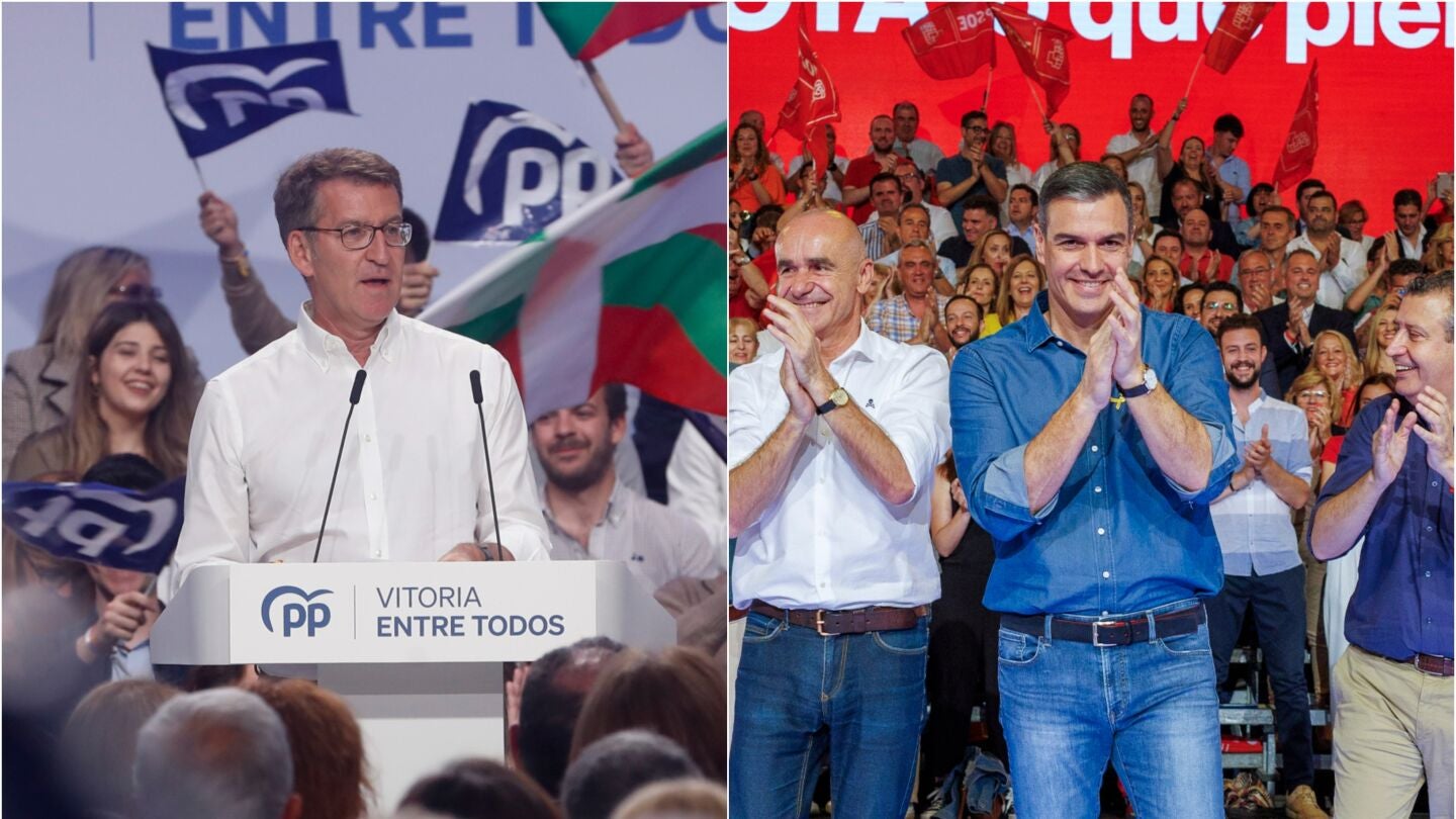 Los líderes del PSOE y PP han centrado este lunes sus actos de campaña en sendas visitas al norte de España, en las que acompañan a sus candidatos para el 28M. Los socialistas sacan pecho de su gestión mientras la derecha insiste en meter a ETA en campaña.