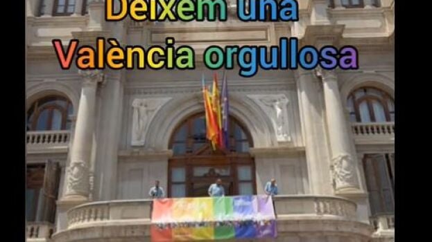 "Hoy dejamos una València orgullosa", ha escrito Ribó con un tuit acompañado de un video. En él, se ve cómo dos personas cuelgan la bandera arcoíris en el balcón del Ayuntamiento, y se escucha de fondo la canción La revolución sexual, de La Casa Azul.