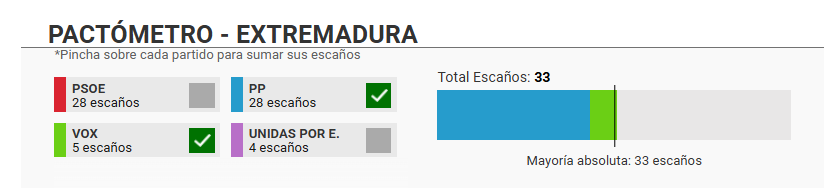 Así funcionó el Pactómetro en las últimas elecciones de Extremadura
