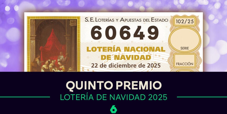 El 60649 reparte 6.000 euros: segundo quinto premio de la Lotería de Navidad de 2025