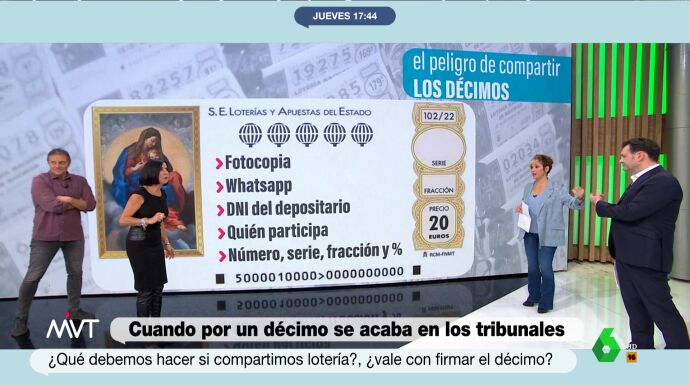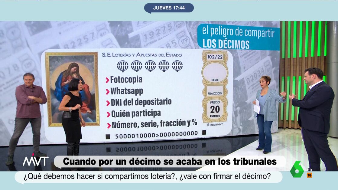 La abogada insiste en directo en Más Vale Tarde que es importante pagar los décimos en los que se participan. Además, recomienda realizar un documento con toda la información de los que lo comparten.