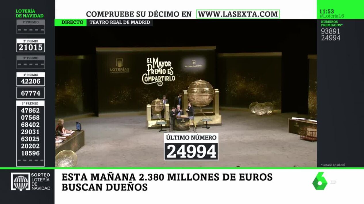 La Lotería de Navidad 2020 como querías verla: sin interferencias y con todos los premios en pantallaLa Lotería de Navidad 2020 como querías verla: sin interferencias y con todos los premios en pantallalaSexta