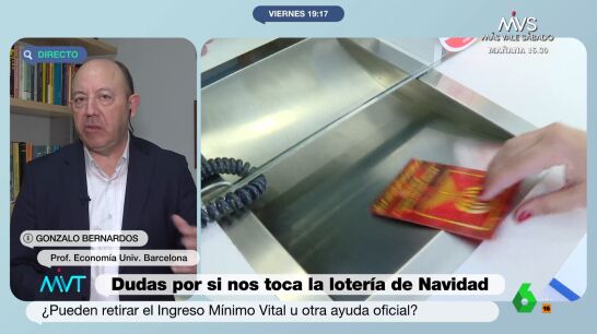 ¿Me pueden quitar alguna ayuda social por ser uno de los afortunados de la Lotería de Navidad? Es una de las preguntas que suscita el codiciado premio del sorteo del próximo 22 de diciembre. El economista Gonzalo Bernardos ha analizado en Más Vale Tarde algunas de las posibilidades en caso de que nos encontremos en esa situación.