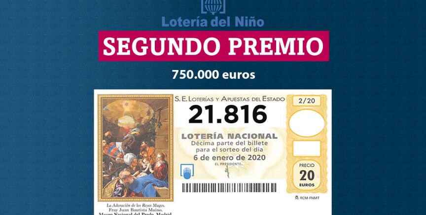 El número 21.816 ha sido el ganador del segundo premio del Sorteo del Niño, dotado con 750.000 euros a la serie, 75.000 euros al décimo. Consulta en nuestro Lotómetro el resto de premios del sorteo.