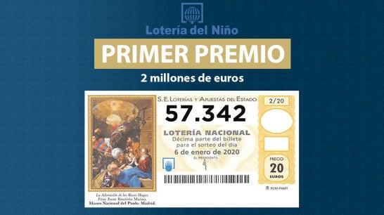 El número 57.342ha sido el ganador del primer premio del Sorteo del Niño 2020. Los niños y niñas de San Ildefonso han cantado el primer premio a las 12:20 horas en el primer Sorteo Extraordinario del año celebrado en el Salón de Sorteos de Loterías y Apuestas del Estado.