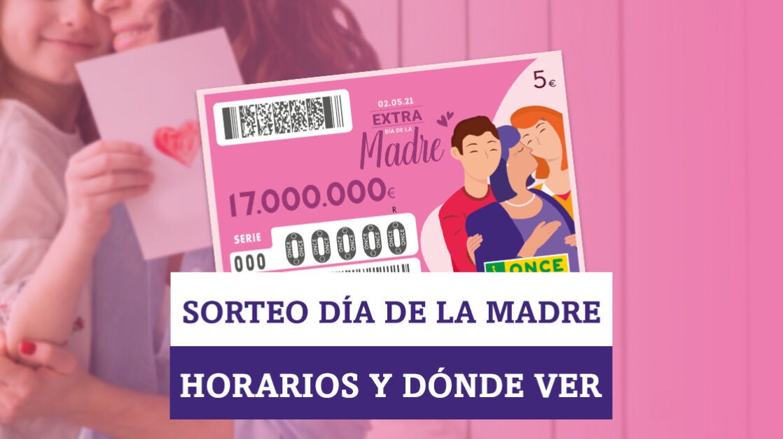 Este domingo 2 de mayo tiene lugar el Sorteo Extra del Día de la Madre, que todos los años celebra la Organización Nacional de Ciegos Españoles (ONCE). El evento tendrá lugar entre las 21:15 y las 21:35 horas y podrá seguirse en directo en laSexta.com, así como en la web de JuegosONCE. En ambas páginas se podrán consultar los resultados del sorteo una vez finalizado.