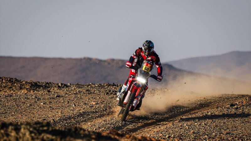 El valenciano, que confesó este lunes que corre con un fuerte golpe en la clavícula desde la quinta etapa del raid, se encontró un resalto en los primeros kilómetros de esta jornada y su moto se descontroló, con un violento latigazo que le sacó por los aires. Sin embargo, Schareina se levantó rápido y, apenas unos segundos de recuperación tras el golpe, se subió a su Honda y pudo continuar, aunque en la primera referencia perdió cuatro minutos respecto a Sanders.