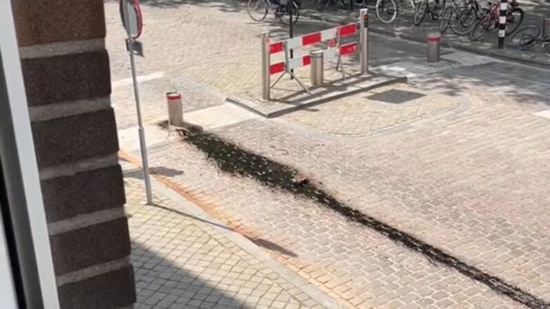 El resultado, un reguero de aceite negro sobre el asfalto y un coche que probablemente necesitará numerosas reparaciones. La conductora bajó de su coche visiblemente sorprendida al ver las luces de advertencia que se encendieron en el panel de control de su vehículo.