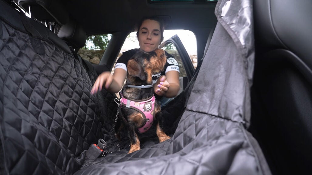 Y una tercera opción es viajar en los asientos traseros. Esta zona es más recomendable para perros de menor tamaño, como esta invitada especial. Necesitaremos, igualmente que el perro lleve el arnés, el cinturón de seguridad y una funda separadora. Adoramos a nuestros peludos, pero el espectacular interior de este Terramar también hay que mimarlo.