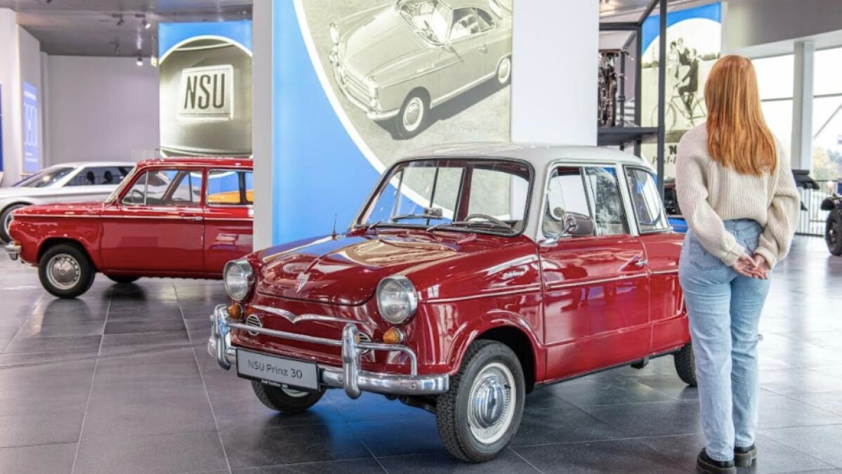 Esto convierte a NSU en la marca predecesora de la actual AUDI AG, y sigue estando intrínsecamente unida a las instalaciones de Audi en Neckarsulm. Se fundó en 1873 en la ciudad alemana de Riedlingen, como 'taller mecánico para la fabricación de máquinas de tejer'. La exposición cuenta con once automóviles, 23 motocicletas, una bicicleta y una máquina de tejer.