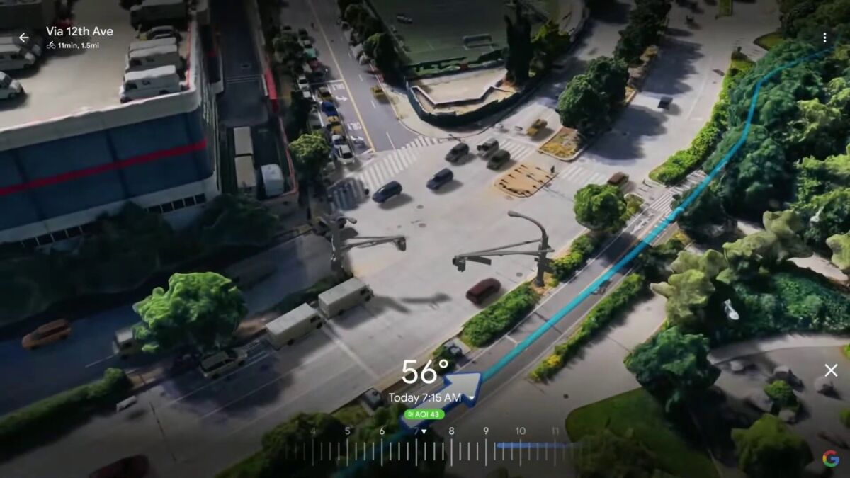 Este sistema de Immersive View funciona con una IA que es capaz de fusionar imágenes de Street View con tomas aéreas para crear un modelo 3D digital actualizado de cada una de las rutas, incluyendo además las indicaciones, cruces, aparcamientos e incluso por dónde discurren los carriles adaptados para bicicletas. Incluso, con los datos de tráfico a tiempo real antes mencionados, dispondrá una recreación de cuál puede estar siendo la densidad de circulación en esos momentos por la carretera, permitiéndonos de esta forma el encontrar seguramente otras rutas que puedan estar menos congestionadas y todo ello con una imagen que parece ser sacada de un videojuego.