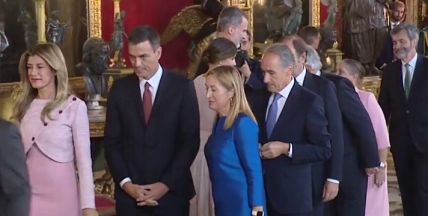 Durante la recepción de los reyes, Pedro Sánchez ha protagonizado la anécdota de la Fiesta Nacional. El presidente del Gobierno ha estado por primera vez en un acto así y tras saludar a Felipe y Letizia se ha colocado en la misma posición que ellos. Responsables de protocolo le han tenido que avisar para que se retirara.