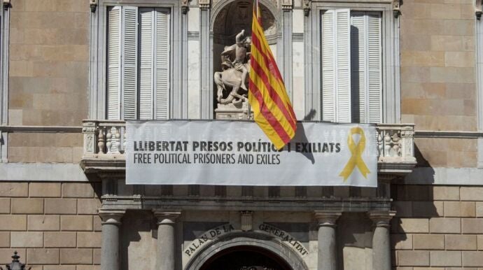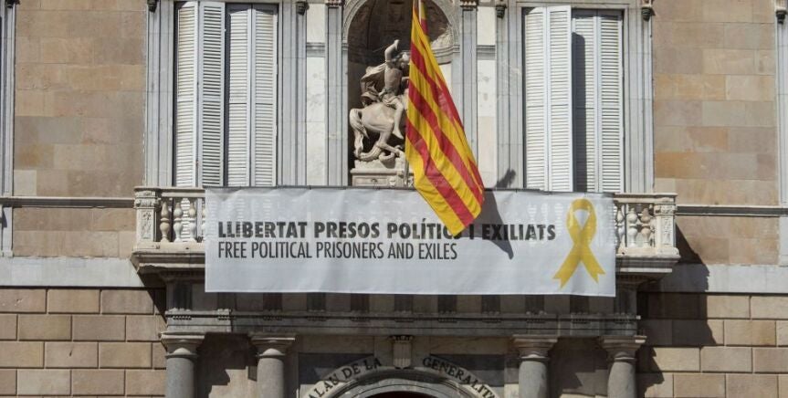 El plazo que dio la Junta Electoral Central para que Torra retirara los lazos amarillos y otros símbolos de edificios públicos venció ayer y en la fachada del Palau de la Generalitat sigue colgando la pancarta 'Libertad presos políticos y exiliados' junto a un lazo amarillo. Torra asegurado hoy que no se “esconde” tras el síndic de greuges, como ves en el vídeo superior.