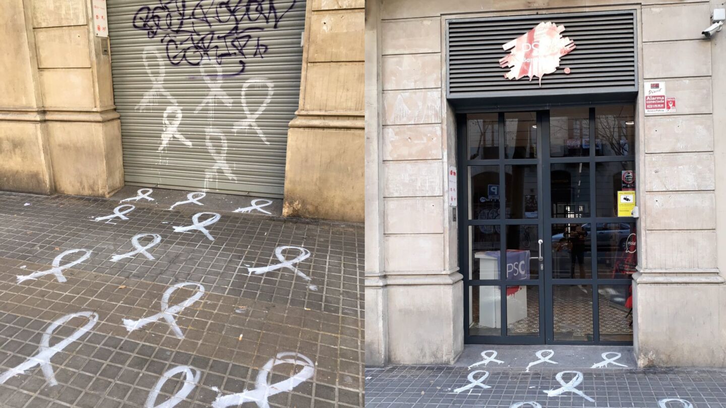 Atacan la sede del PSC en Barcelona con pintadas de lazos blancos