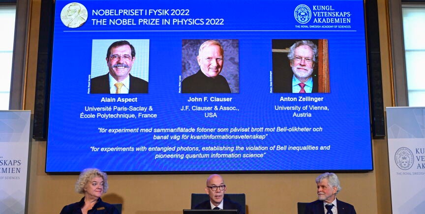 Los científicos Alain Aspect, John F. Clauser y Anton Zeilingier fueron distinguidos hoy con el Premio Nobel de Física 2022 por sus descubrimientos en relación con el "poder de la mecánica cuántica", ha comunicado el Instituto Karolinska en Estocolmo.