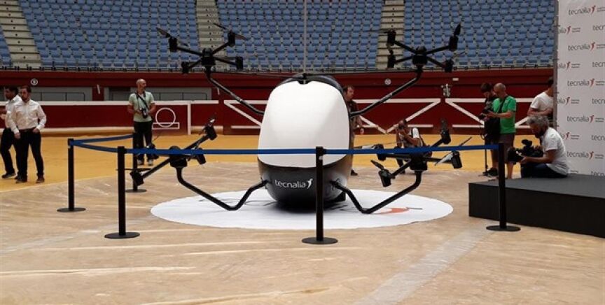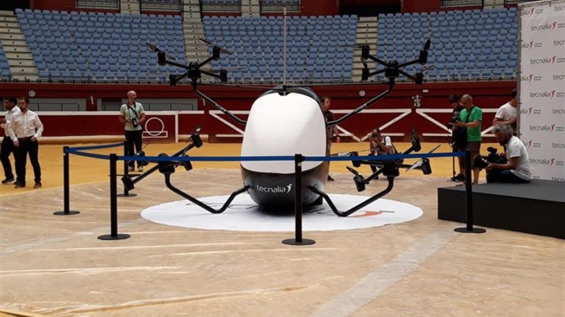 El primer prototipo de aerotaxi sin piloto que se desarrolla en España, y el tercero en Europa, ha sido presentado en San Sebastián por el centro tecnológico vasco Tecnalia, que ha diseñado una nave provista de 4 drones y 16 motores pensada para trasladar un pasajero en trayectos cortos en ciudad.