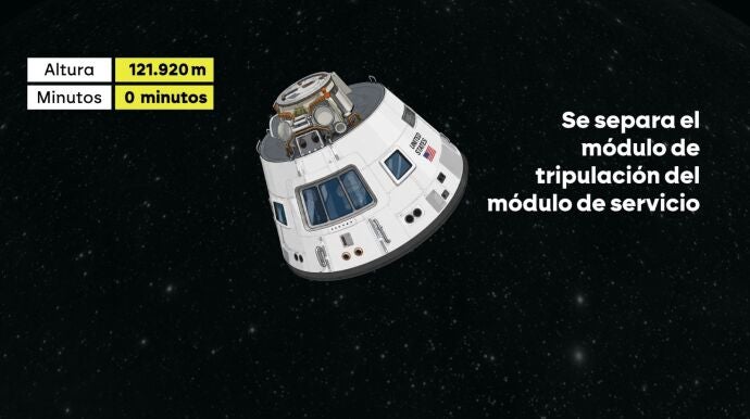 El proceso de regreso, ya en el día 10 de misión, durará apenas 13 minutos, pero concentrará algunos de los momentos más críticos de toda la misión. El primer paso será la separación del módulo de tripulación de la nave Orion del módulo de servicio, cuyos motores han permitido completar el viaje alrededor de la Luna.