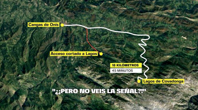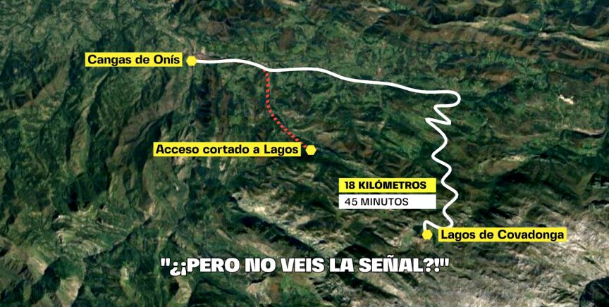Y en toda esa larga cola de conductores despistados había una coincidencia: su destino. Todos se dirigían a los Lagos de Covadonga. Pero un error de Google Maps les obligaba a desviarse por estos pueblos. Un trayecto de 18 kilómetros por una carretera que, poco a poco, se va complicando y estrechando. El asfalto termina desapareciendo hasta convertirse en una vía pecuaria.