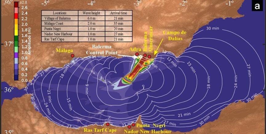 En estos posibles escenarios las olas de tsunami se propagarían en dos ramales principales e inundarían sectores densamente poblados de la costa sur de España y del norte de Marruecos. Las olas generadas podrían alcanzar los seis metros de altura y tan solo tardarían en llegar a la costa entre 21 y 35 minutos, según los cálculos del equipo de investigadores del CSIC.