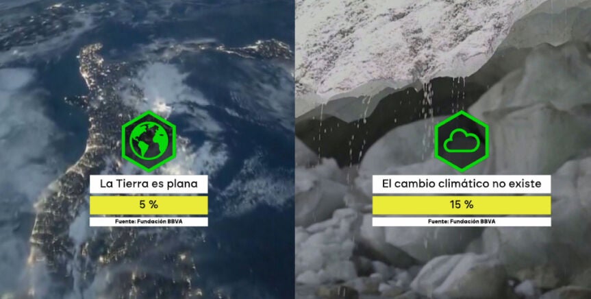 Así lo refleja el estudio Cultura Científica en España, publicado este martes por la Fundación BBVA y elaborado a partir de dos encuestas a más de 4.000 españoles mayores de 18 años. Y no solo eso: un 22% duda de que el hombre haya llegado a la Luna, un 15% cree que el cambio climático no existe, un 6% vincula las vacunas con el autismo y un 5% está convencido de que la Tierra es plana.