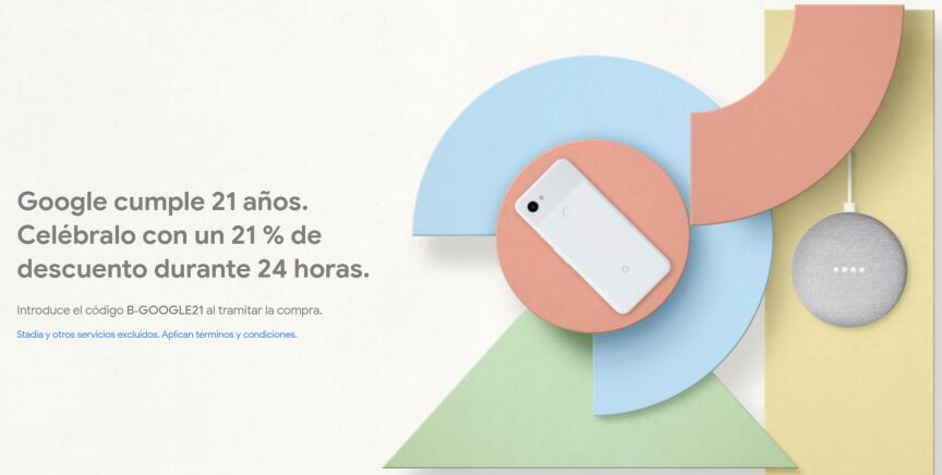Google está de celebración, y una de las promociones para celebrarlo que más va a interesar a los consumidores son los descuentos que ofrece a través de su tienda online.
